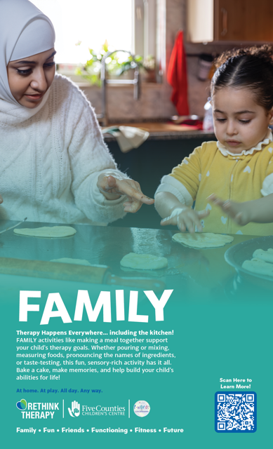 When we Rethink Therapy, we see therapy happens everywhere — not just at Five Counties Children’s Centre with a clinician/staff member, but all around us!